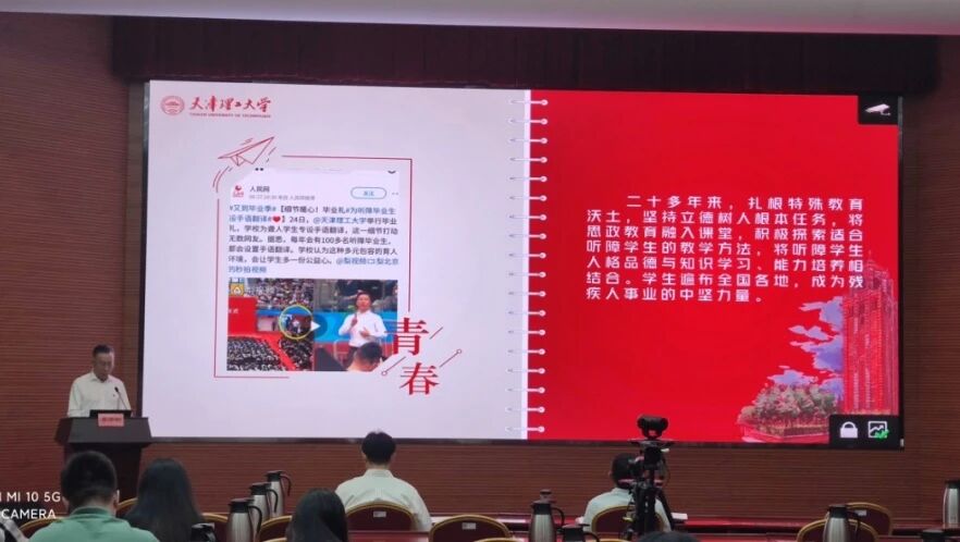 活动中,李子刚老师结合20余年担任听障学生英语教师的教学经历,分享了主动攻克手语难关、摸索适合听障学生的英语教学方法的有效做法,彰显了因材施教的育人智慧;其在学期末结业典礼上进行手语翻译的身影和学生们在一张张结课照上的笑脸,体现了乐教爱生的师者之心。